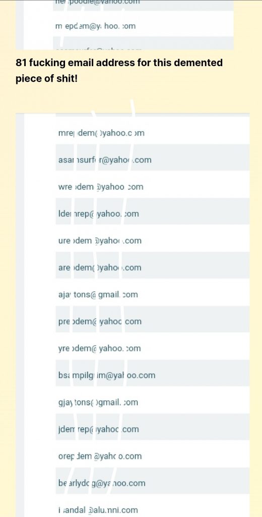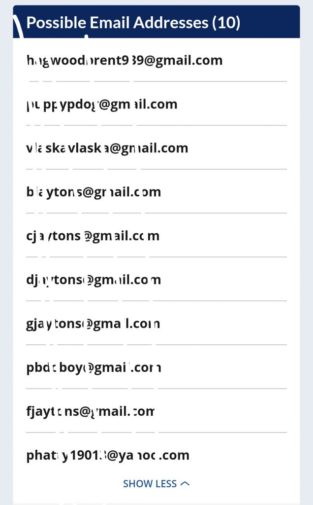 Brent Hagwood #1. There were many addresses, family, associates, phone numbers and 81 emails. This listing of Brent is no longer accessible online so thankfully we had the proof saved.